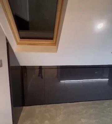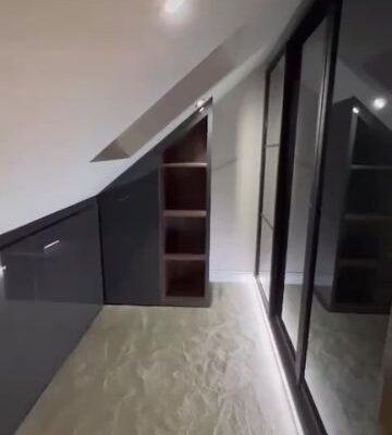 Custom Storage Solutions: We designed and installed sleek, high-gloss fitted wardrobes and integrated eaves storage to maximize every inch of the new floor plan.