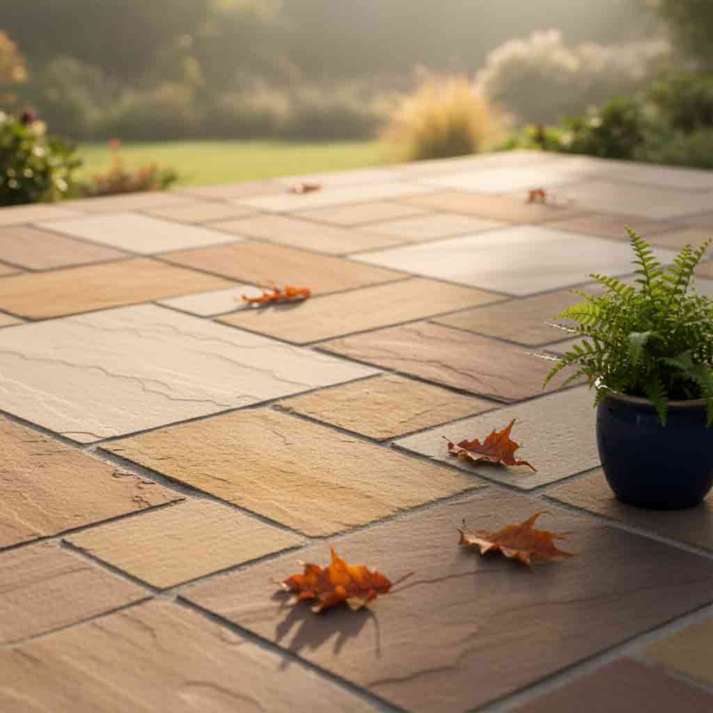 A British garden classic. Each slab is unique, offering natural veins and warm tones that add character to any garden. We hand-point our sandstone for a timeless finish.