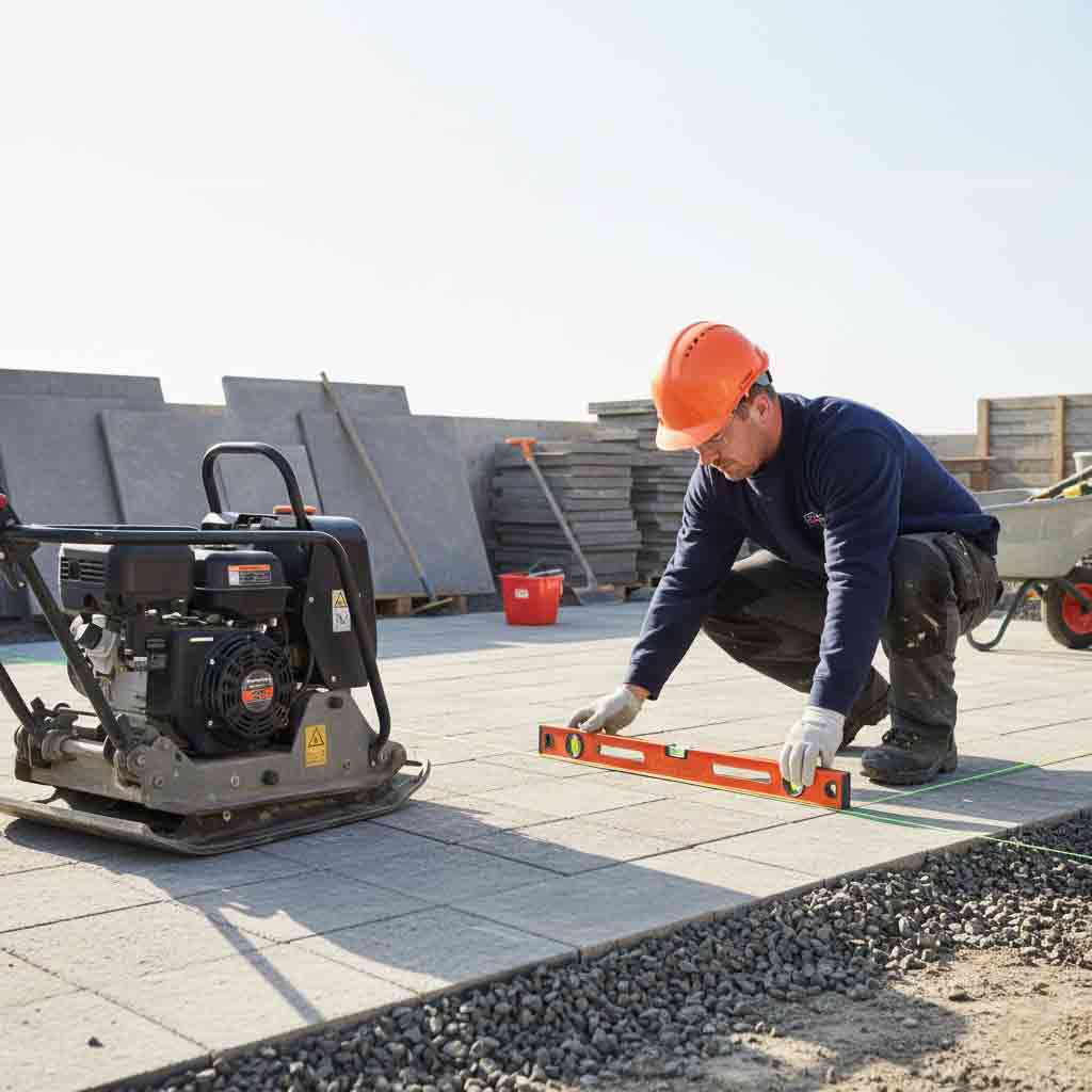 • Sub-Base Preparation: We dig out to the correct depth and install a compacted MOT Type 1 sub-base, ensuring your patio never sinks or shifts.